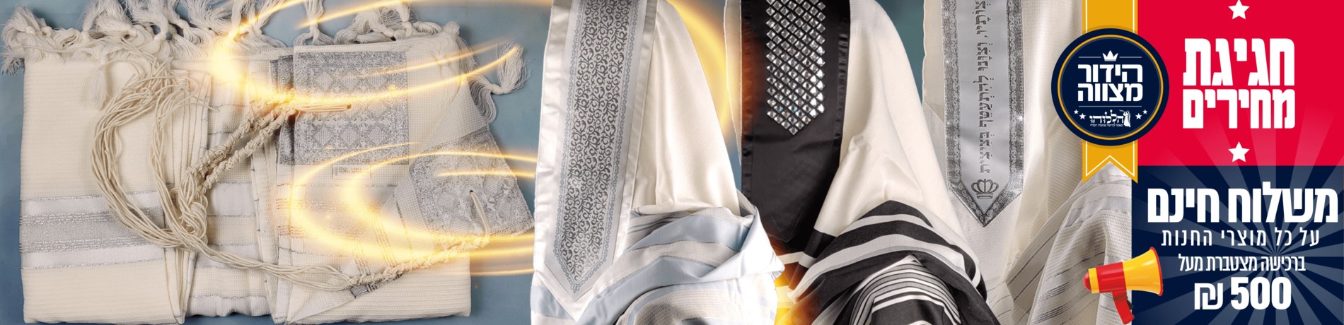 אצלנו תמצאו מבחר עשיר של מוצרי קודש מהודרים, כולל טליתות, תפילין, ציציות, כיסויים מעוצבים ורקמות בהתאמה אישית – כולם באיכות גבוהה ותוך הקפדה על ההלכה והמסורת היהודית.