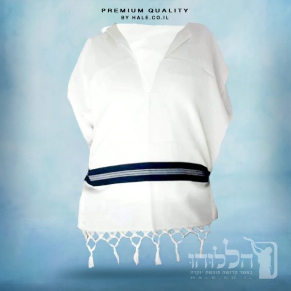 טלית קטן 100% צמר רחלים עם פס שחור באריגה שבתית יחודית ויפהפיה