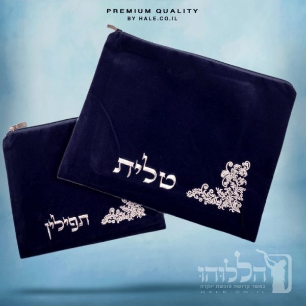 סט כיסוי לטלית ותפילין – קטיפה בגוון כחול כהה – 249